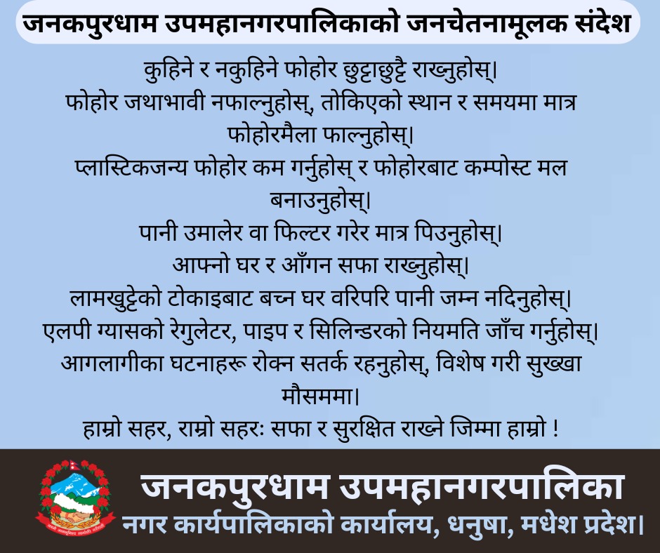 न्युज टाईम्स टिभी – जनकपुरधाम, ४ चैत २०८२, बुधवार— जिल्ला प्रशासन कार्यालय धनुषा ले ग्यास […]